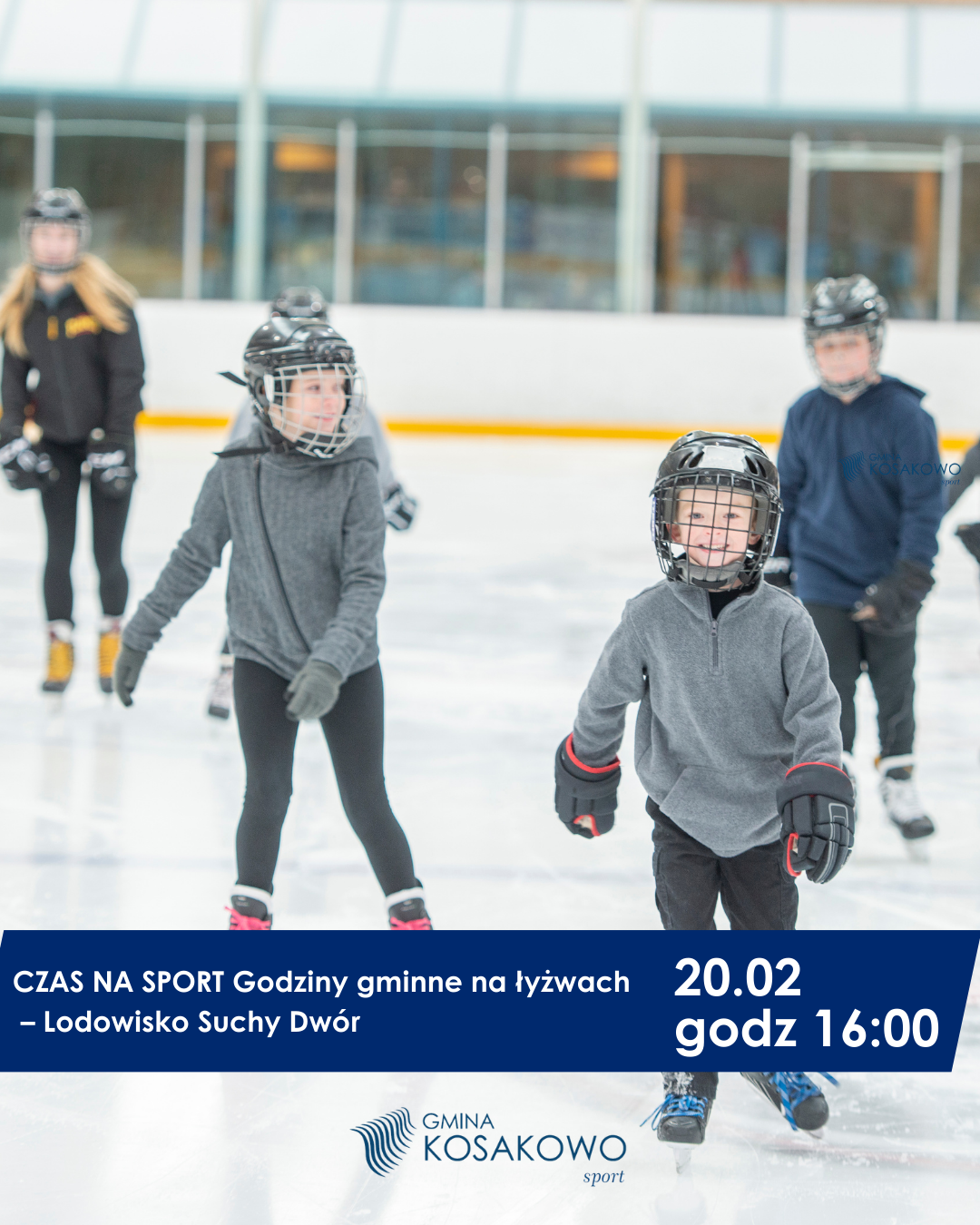 Już w najbliższy piątek, 20.02.2026 r., zapraszamy na kolejne darmowe godziny gminne na łyżwach w ramach projektu CZAS NA SPORT.